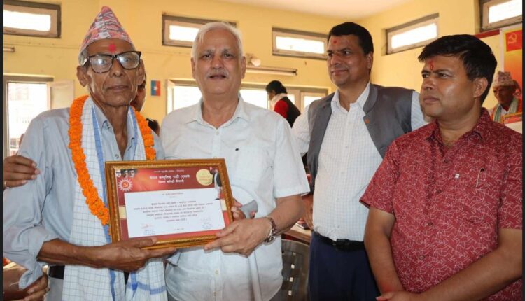 धनगढी : कैलालीमा पहिलो पटक एमालेका ज्येष्ठ पार्टी सदस्यलाई सम्मान गरिएको छ । ३१ औँ मदन आश्रित स्मृति दिवसको अवसरमा एमाले कैलाली जिल्ला कमिटीले २८५ जना पुराना एमालेका नेता कार्यकर्ताहरूलाई सम्मान गरेको हो ।