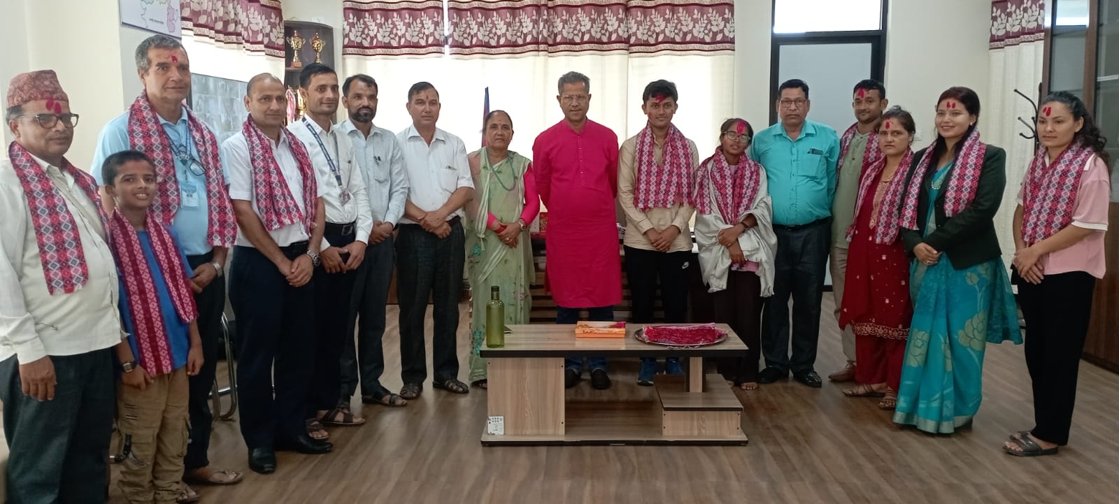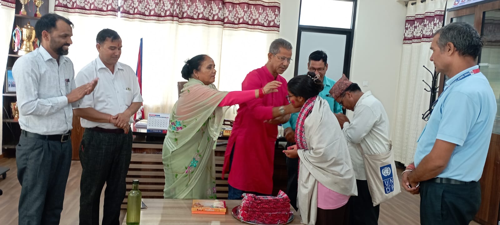नगरप्रमुख र उपप्रमुखले बिद्यार्थीहरुसंगै अभिभावक र बिद्यालयका प्रध्यानाध्यापकहरुलाई पनि अबिर र खादा लगाएर धन्यवाद ज्ञापन गरेका छन् ।