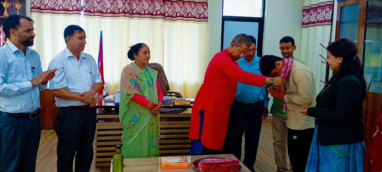 नगरपालिकाका नगरप्रमुख बिरेन्द्र भट्ट, उपप्रमुख शारदा देवी रोकाया र शिक्षा शाखाले एसईईमा ४ जिपिए हासिल गरेका अत्तरिया स्थित दुर्गालक्ष्मी नमुना माविकी छात्रा नितिका अवस्थी, सत्यवती एकेडेमीका निर्मल ठगुन्ना र सैनिक आवासीय महाविद्यालय तेघरीका बिकास रावतलाई अबिर र खादा लगाएर बधाई दिदै शुभकामना व्यक्त गरेका छन् ।