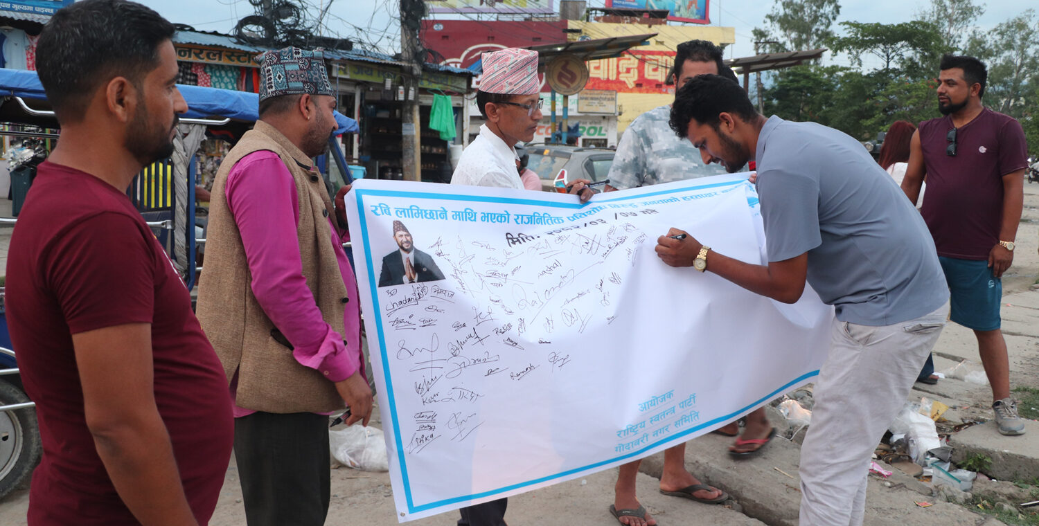 उनले रबी लामिछाने गलत भए फैसला हुनुपर्ने र गलत नभए जनताको सेवा गर्न दिइनुपर्ने बताउँदै जनताको साथका लागि हस्ताक्षर कार्यक्रम गरिएको बताए । उनले हस्ताक्षर गरिएको ब्यानर जिल्ला प्रशासन कार्यालयमा बुझाउने बताए ।