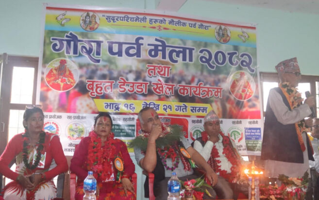 भदौ २१ गतेसम्म चल्ने मेलाको सोमबार सुदूरपश्चिम प्रदेशका अर्थ राज्यमन्त्री प्रकाश बमले उद्घाटन गरेका छन्। उद्घाटन कार्यक्रममा बोल्दै बमले गौरा पर्व सुदूरपश्चिमको पहिचान भएकोले जर्गेना गर्नु जरुरी रहेको बताए ।