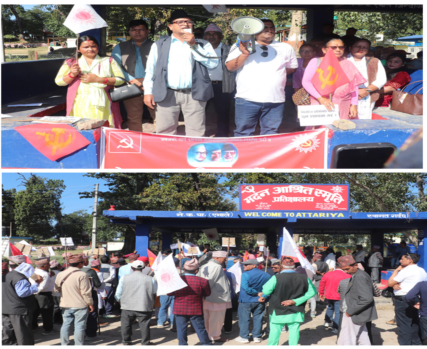 अत्तरियाको बनखेतमा रहेको एमालेको पार्टि कार्यालयबाट प्रदर्शनका क्रममा निकालिएको विरोध र्‍याली अत्तरिया बजार परिक्रमा गरी ट्राफिक प्रहरी कार्यालय अगाडि रहेको मदन आश्रित स्मृति प्रतीक्षालयमा कोणसभामा परिणत भएको थियो ।