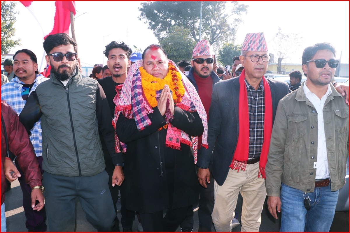 उनको धनगढी विमानस्थलमा कांग्रेसका नेता कार्यकर्ता, सुवेक्षुकले भव्य स्वागत गरेका थिए । कांग्रेस क्षेत्रीय सभापति वसन्त रोकाया, गोदावरीका मेयर वीरेन्द्र भट्ट लगायतले विमानस्थलमा उनको स्वागत गरेका थिए ।