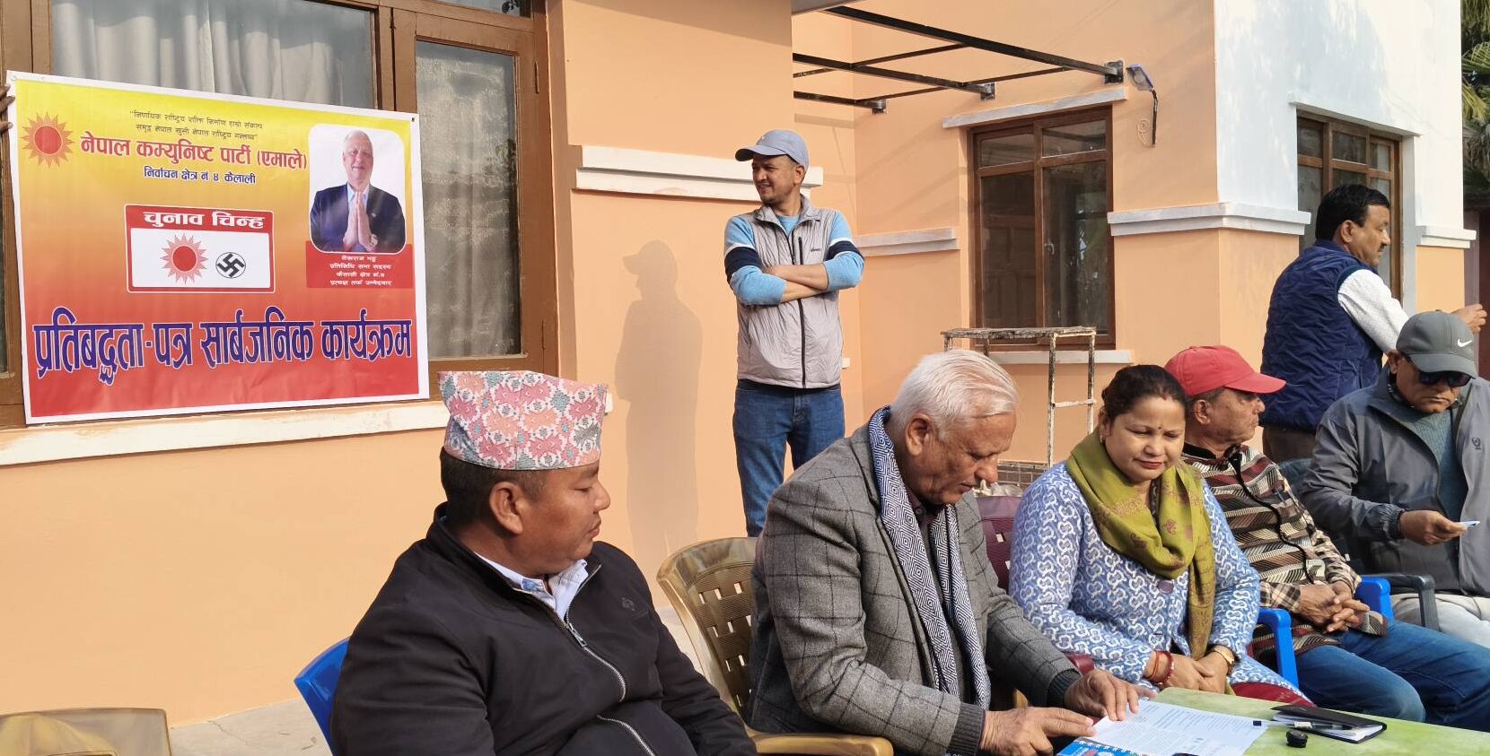 अत्तरिया : नेपाल कम्युनिष्ट पार्टी (एमाले) का तर्फबाट प्रतिनिधि सभा सदस्य निर्वाचन क्षेत्र नं. ४, कैलालीका उम्मेदवार लेखराज भट्टले आफ्नो चुनावी प्रतिबद्धता पत्र सार्वजनिक गरेका छन् ।