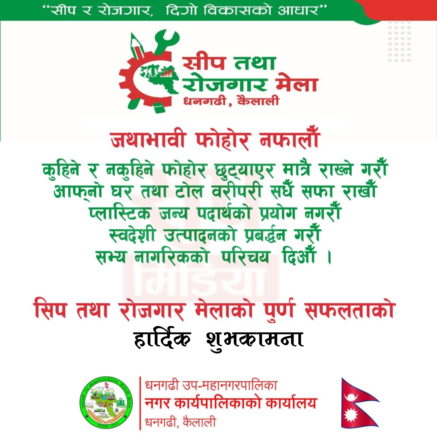 समापन कार्यक्रममा बोल्दै धनगढी उपमहानगरपालिकाकी उपप्रमुख कन्दकलाकुमारी रानाले मेलाले बेरोजगार युवायुवतीलाई स्वरोजगारतर्फ उन्मुख गराउन महत्वपूर्ण भूमिका खेलेको बताइन् ।